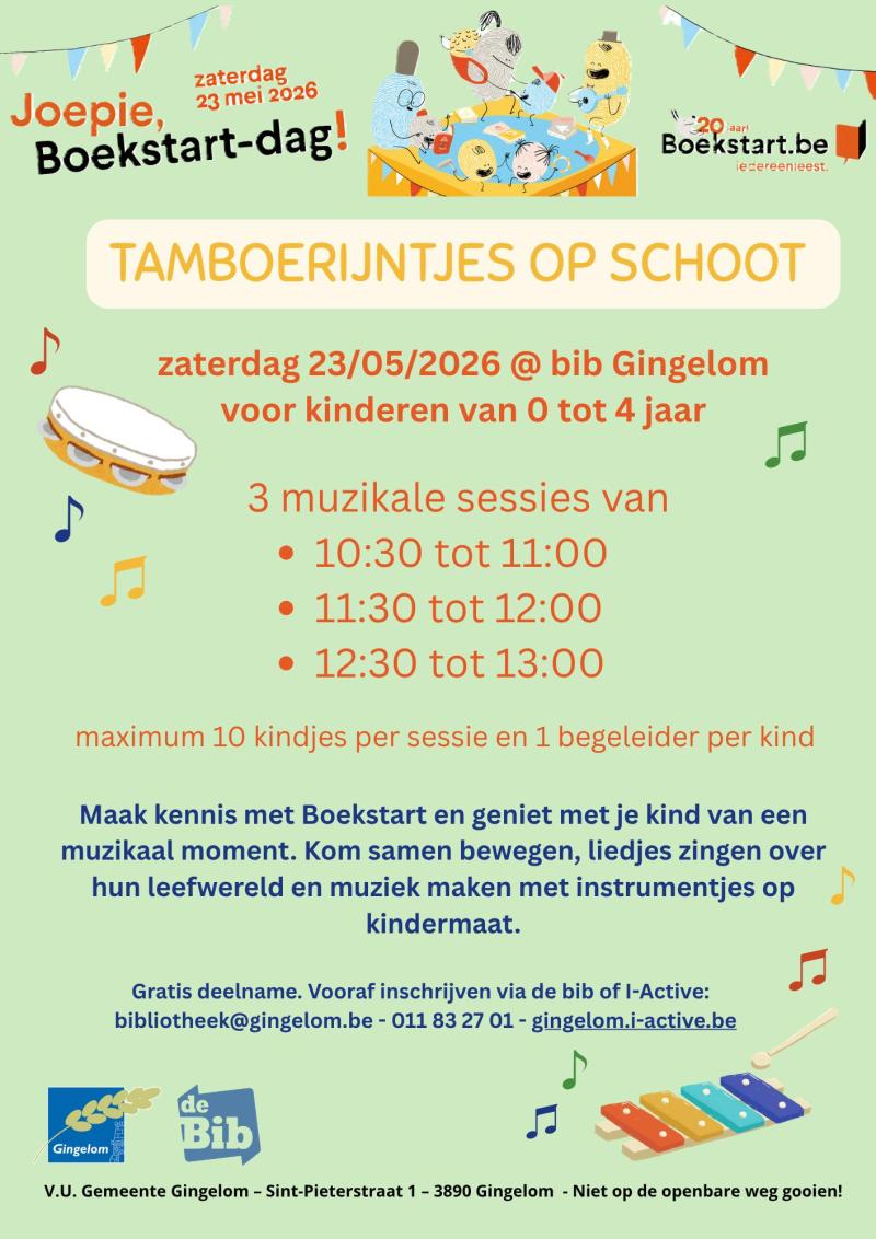 De plaatsen zijn beperkt tot 10 kindjes per sessie en 1 begeleider per kind. Vooraf inschrijven via de bib: bibliotheek@gingelom.be - 011 83 27 01